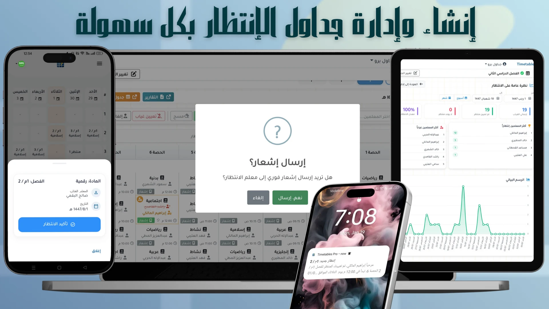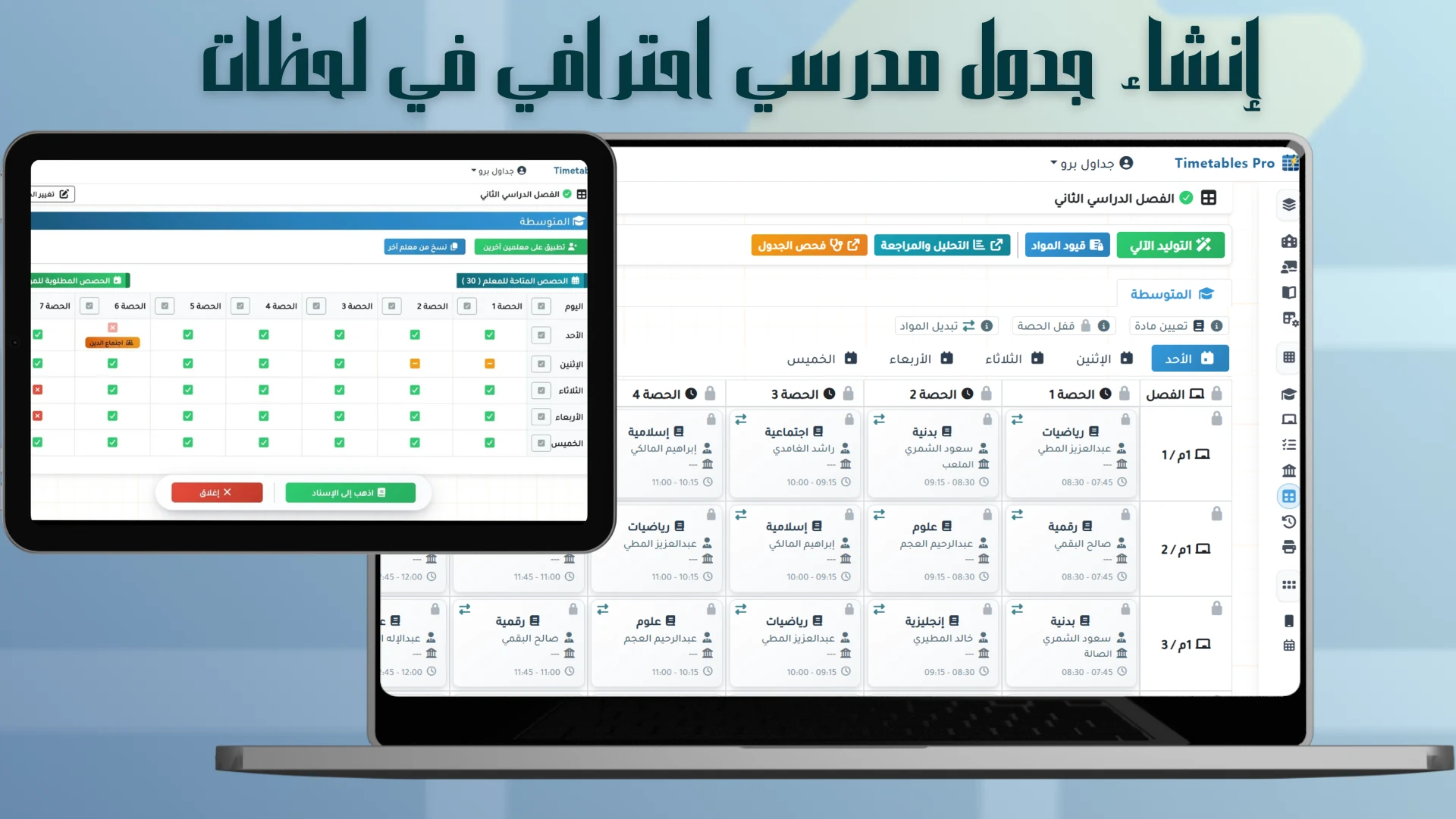 جداول برو لراحتك طوال العام الدراسي — جداول مدرسية احترافية، نظام الإنتظار، الإشراف اليومي، تنبيهات عبر الجوال، والمزيد...