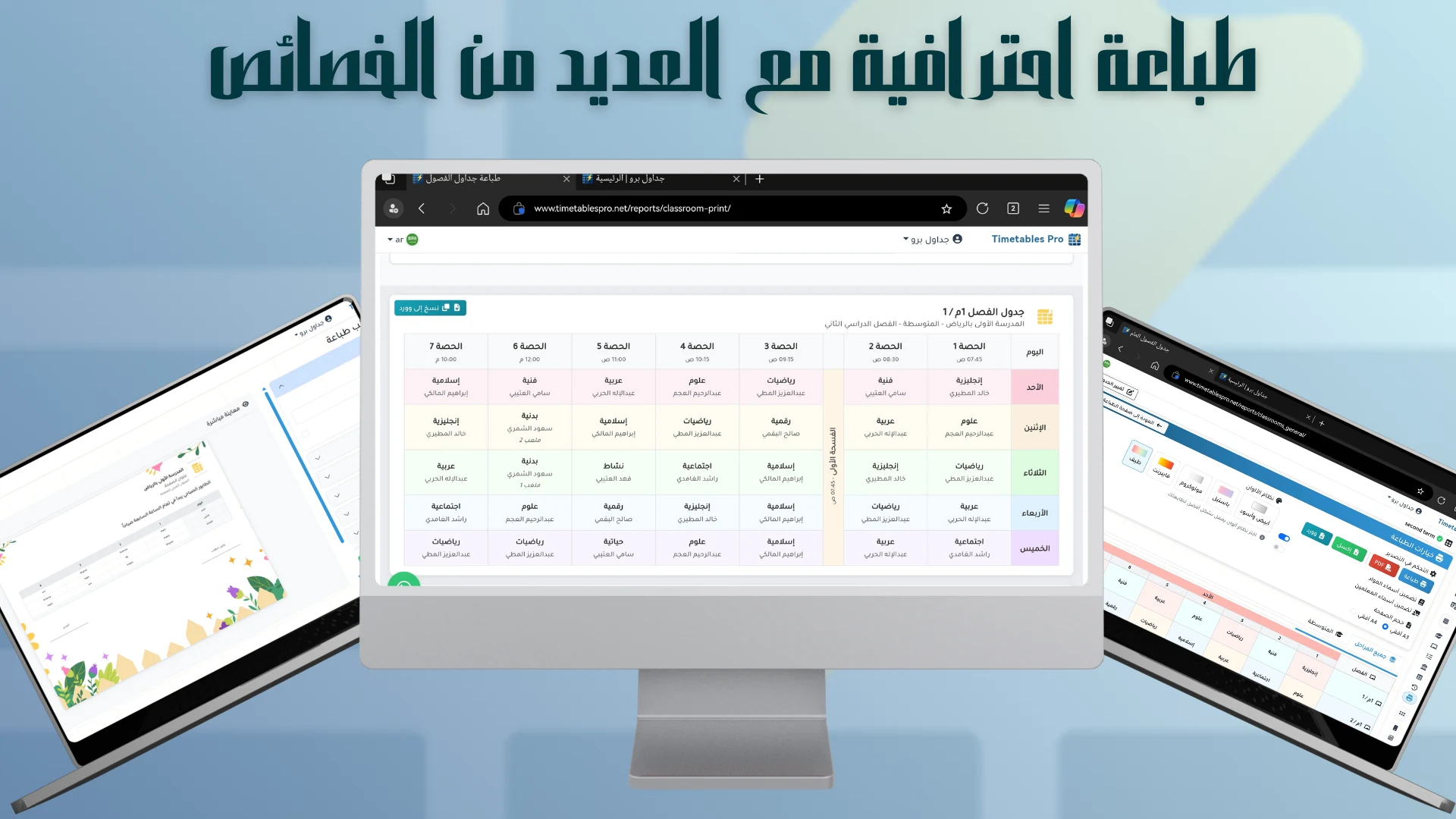 نعم. تقدر تصدّر الجداول بصيغ Word / Excel / PDF لسهولة الطباعة والمشاركة. وكمان تقدر إنشاء قوالب خاصة بك داخل الموقع أو دمج الجداول في قوالب الوورد الخاصة بمدرستك.